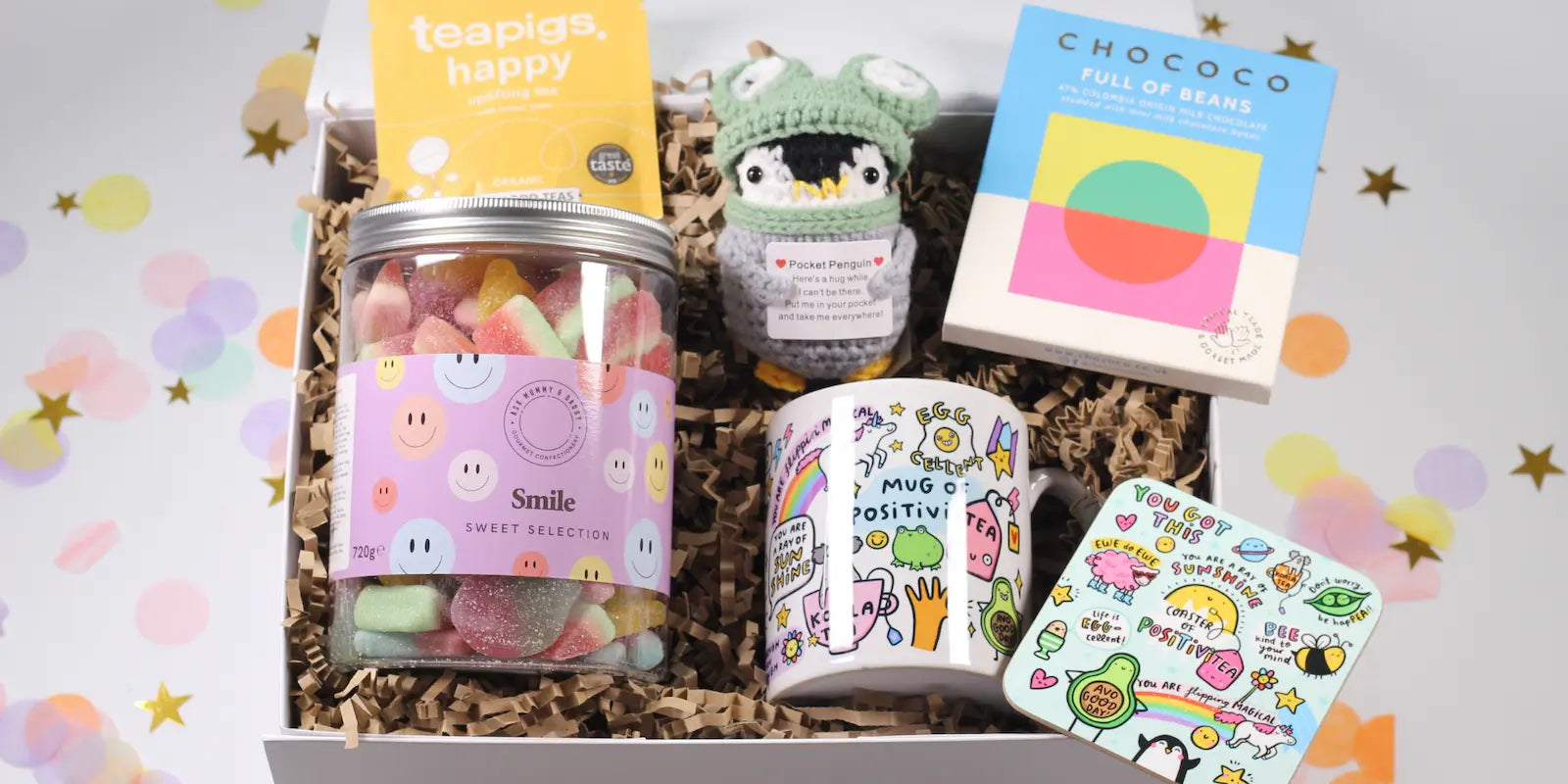 Thoughtful letterbox and gift boxes designed to brighten someone’s day. Perfect for birthdays, get well soon gifts and thinking of you moments, all delivered across the UK.