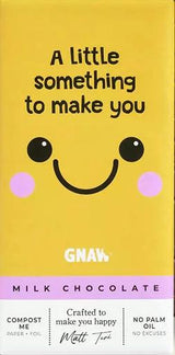 The chocolate bar to brighten someone’s day Our ‘Something to make you smile’ single-origin milk chocolate bar is designed to brighten anyone's day. Crafted with care and filled with love, this special bar is more than just chocolate; it's a gesture of joy, guaranteed to bring a smile to the face of someone dear to you. Give the gift of happiness What you’re getting: - 1x 80g GNAW ‘Something To Make You Smile’ Milk Chocolate Bar Each GNAW chocolate bar comes wrapped in fully home compostable paper and foil. Just the good stuff, always We make top-notch chocolate. Real ingredients. Well-paid cocoa farmers.