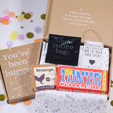 All of the products in our beautiful letterbox boxes have been lovingly selected and are hand packed in a 'You've Been Hugged' disposable box.