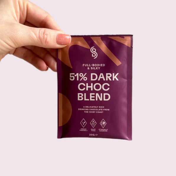 Creamy & Indulgent. A luxurious drinking chocolate mixed with coconut sugar and Himalayan salt, ready to be mixed with your milk of choice.