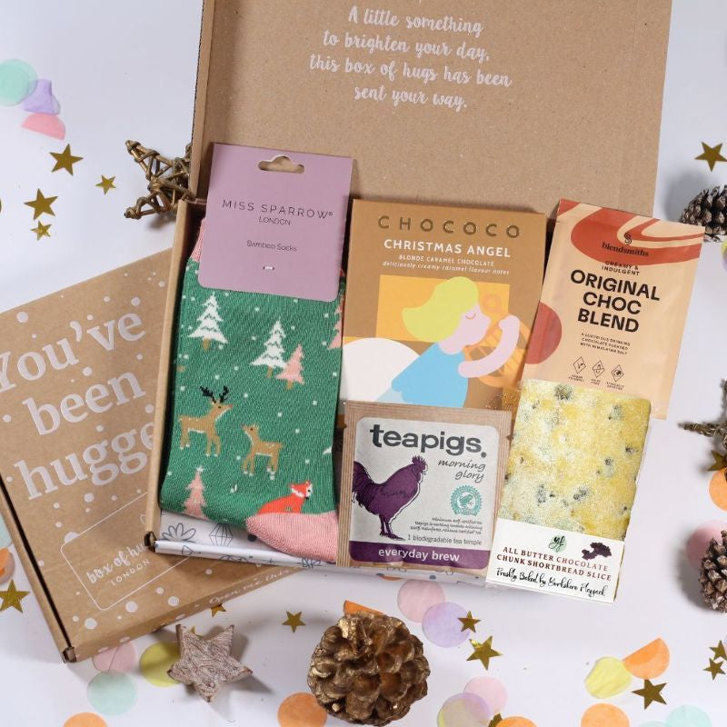 All of the products in our beautiful letterbox boxes have been lovingly selected and are hand packed in a 'You've Been Hugged' disposable box.