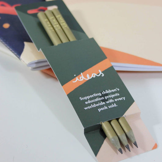 Pack of 3 recycled pencils in a Green Ideas pencil sleeve.
