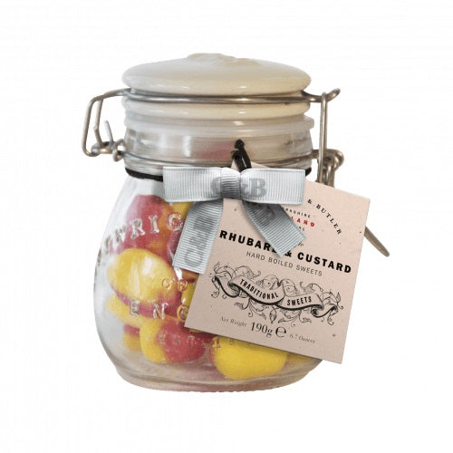 Whoever thought to take one of life’s great desserts and turn it into a sweet deserves a knighthood. These boiled-sweets lose none of that tangy rhubarb and sweet, creamy custard flavour. Given the respect these classic sweets deserve, they come in a smart clip-lid jar with a ceramic lid.