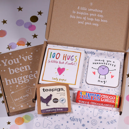 All of the products in our beautiful letterbox boxes have been lovingly selected and are hand packed in a 'You've Been Hugged' disposable box.