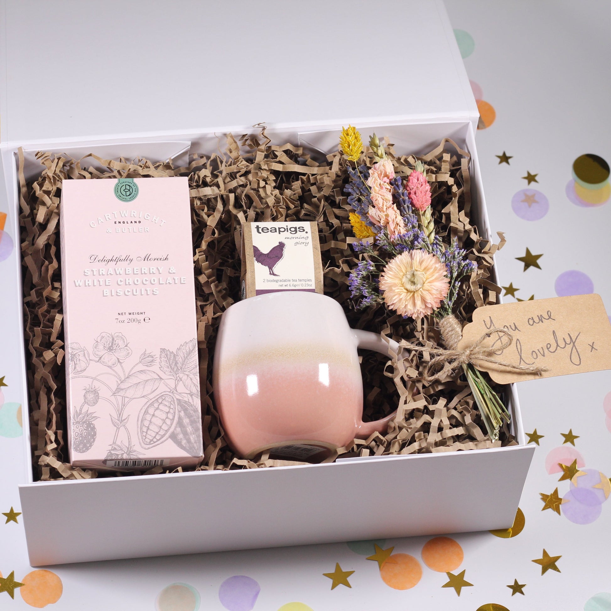 All of the products in our beautiful boxes have been lovingly selected and are hand packed in a keepsake magnetic white box. Each box includes a card, which you can add a personalised message to, making your hug even more special. (You will be asked for this during the checkout stage)